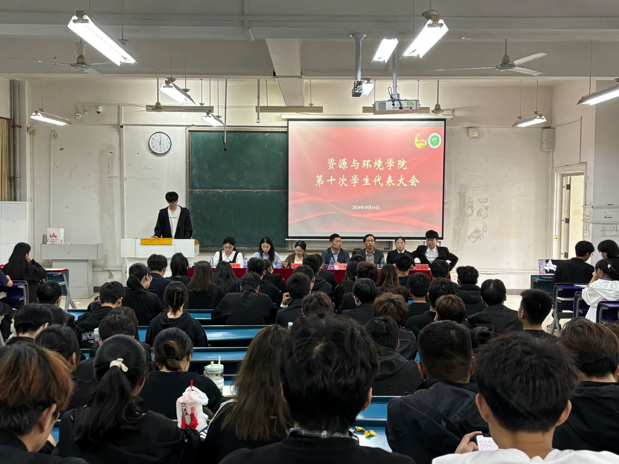 10月16日中午,资源与环境学院于新知楼B103召开第十次学生代表大会。学院党委副书记沈树周应邀出席并讲话,学院有关教师、学生代表参加会议,会议由副科级辅导员王丽萍主持。