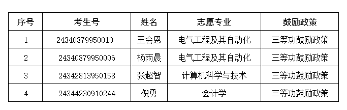 根据《爱体育手机官方网站_爱体育(中国)2024年普通高校专升本招生章程》关于申请三等功鼓励政策相关要求,经审核,王会恩等4名考生符合申请免试条件,现予以公布。如有异议或遗漏,请于4月9日12:00前,与爱体育手机官方网站_爱体育(中国)招生办公室联系。联系电话:0550-67320410552-3197041