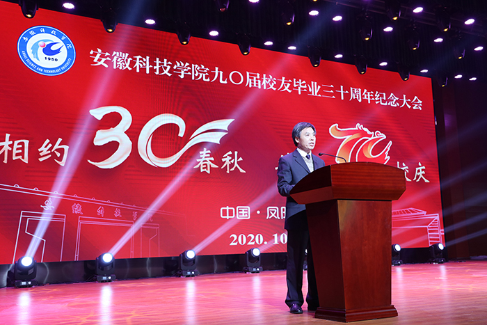 纪念大会上,蒋德勤首先代表学校向来自海内外的校友表示热烈的欢迎,向校友们长期情系母校、关心支持母校发展表示由衷感谢和崇高敬意。他动情地说,三十年前,各位校友恰同学少年,意气风发,怀揣青春梦想,在母校书声琅琅、孜孜以求;三十年后,各位校友壮志凌云、风采依旧,在新时代梦想的感召下,在各自岗位上耕耘不缀。各位校友把青春和汗水、智慧和力量,奉献给自己热爱的事业和工作岗位,奉献给党和人民,取得了令人欣喜的成就,为母校增添了光彩,赢得了声誉,母校为你们人生的平安、和顺、作为、成就而感到骄傲和自豪。