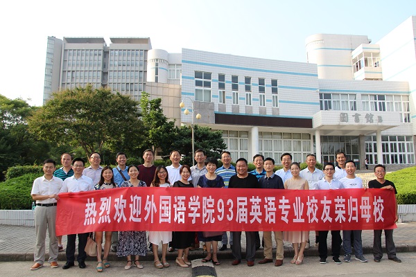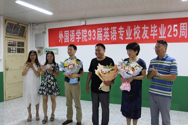 岁月如歌,共忆同窗往事,来日似锦,再叙师生情缘”。7月21日下午,外国语学院93届英语专业校友从祖国各地齐聚母校举行毕业25周年座谈会。原外国语学院党总支书记彭光明、校招生与就业工作处处长黄树桥、授课教师代表、外国语学院党政领导等应邀出席。